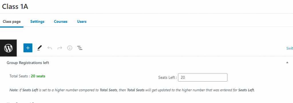 In the v4.3.8 update we added a new field called the “Total Seats” Field. This new field/count was introduced to make sure admins can easily control the Total Seats and in-turn the Seats Left in the group as well as do the same for an existing group that has already been purchased by a Group Leader.