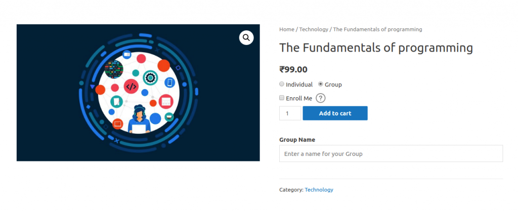 When the user selects Group purchase option, they are able to increase the quantity which is the total number of members that can be added to a group. With this option a group will be created for ‘1’ as the quantity.