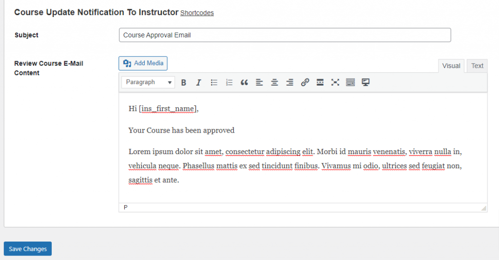 Similarly, when an administrator approves the instructor updates, an email is sent to the instructor.