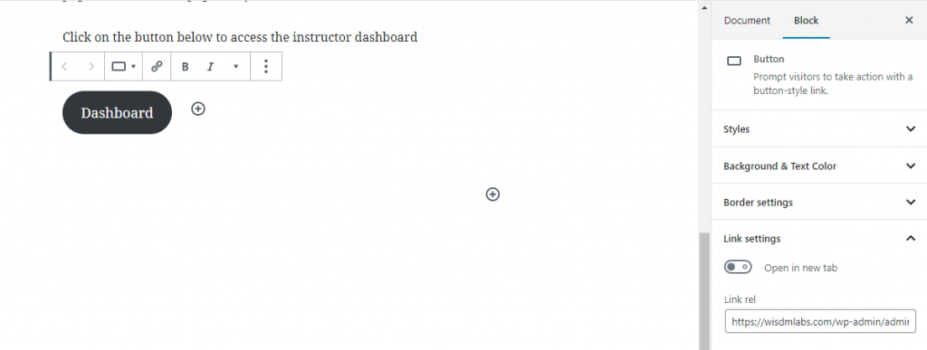Add a button using block editor and add a name for the button.