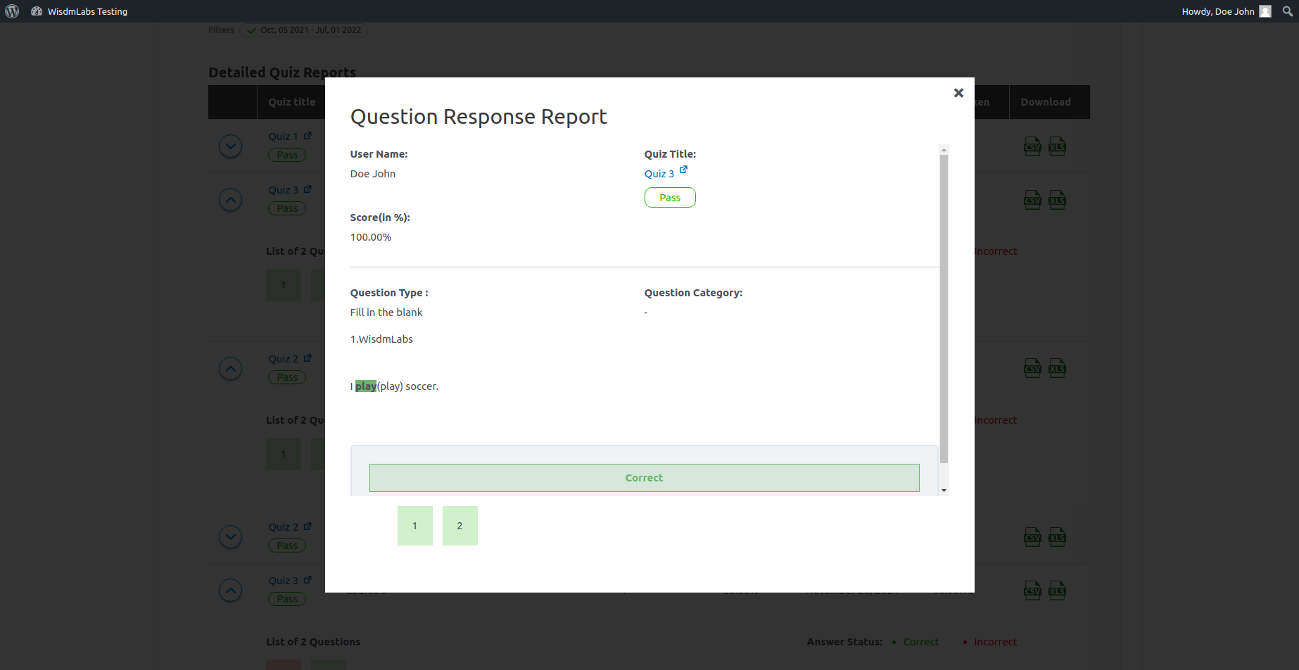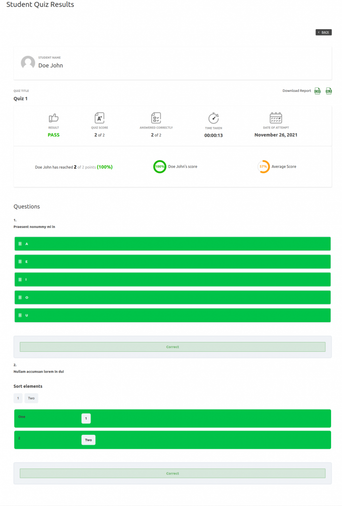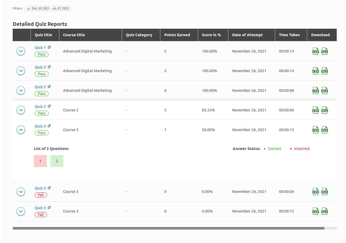 They can also download any specific attempt details by clicking on the CSV/XLS buttons as shown in the screenshot.