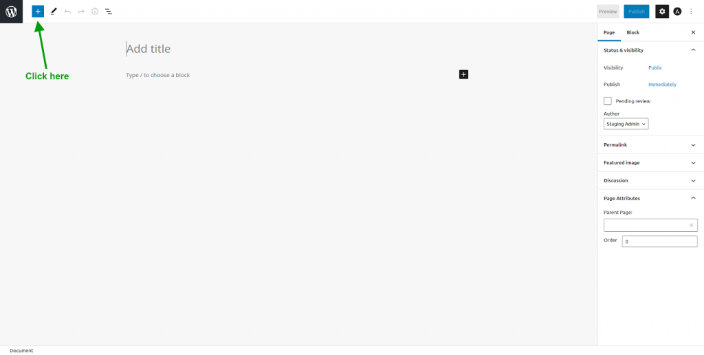 - After that, click the + icon at the top-left of the Gutenberg editor.