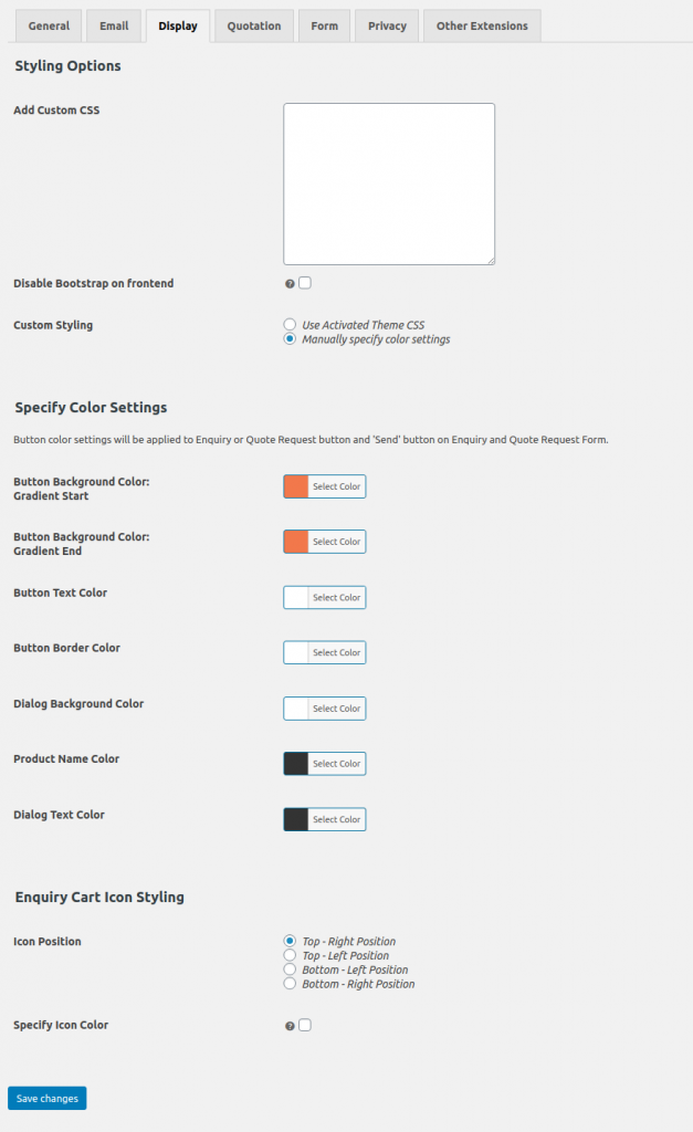 Once you enable this setting, you will get other settings to modify the color of the Enquiry Cart Icon.